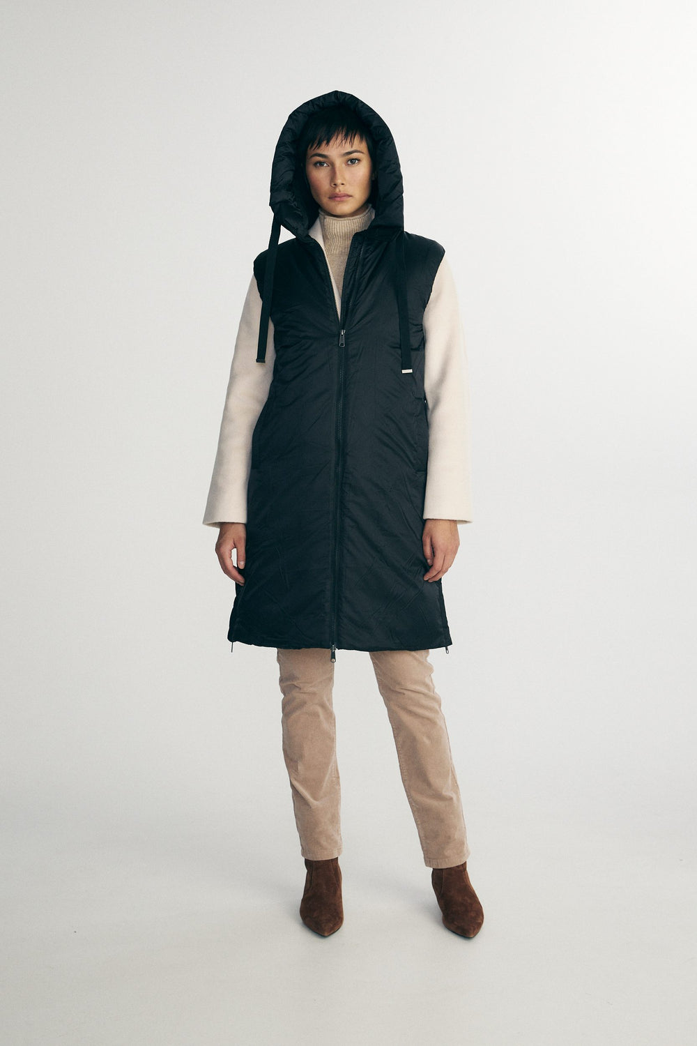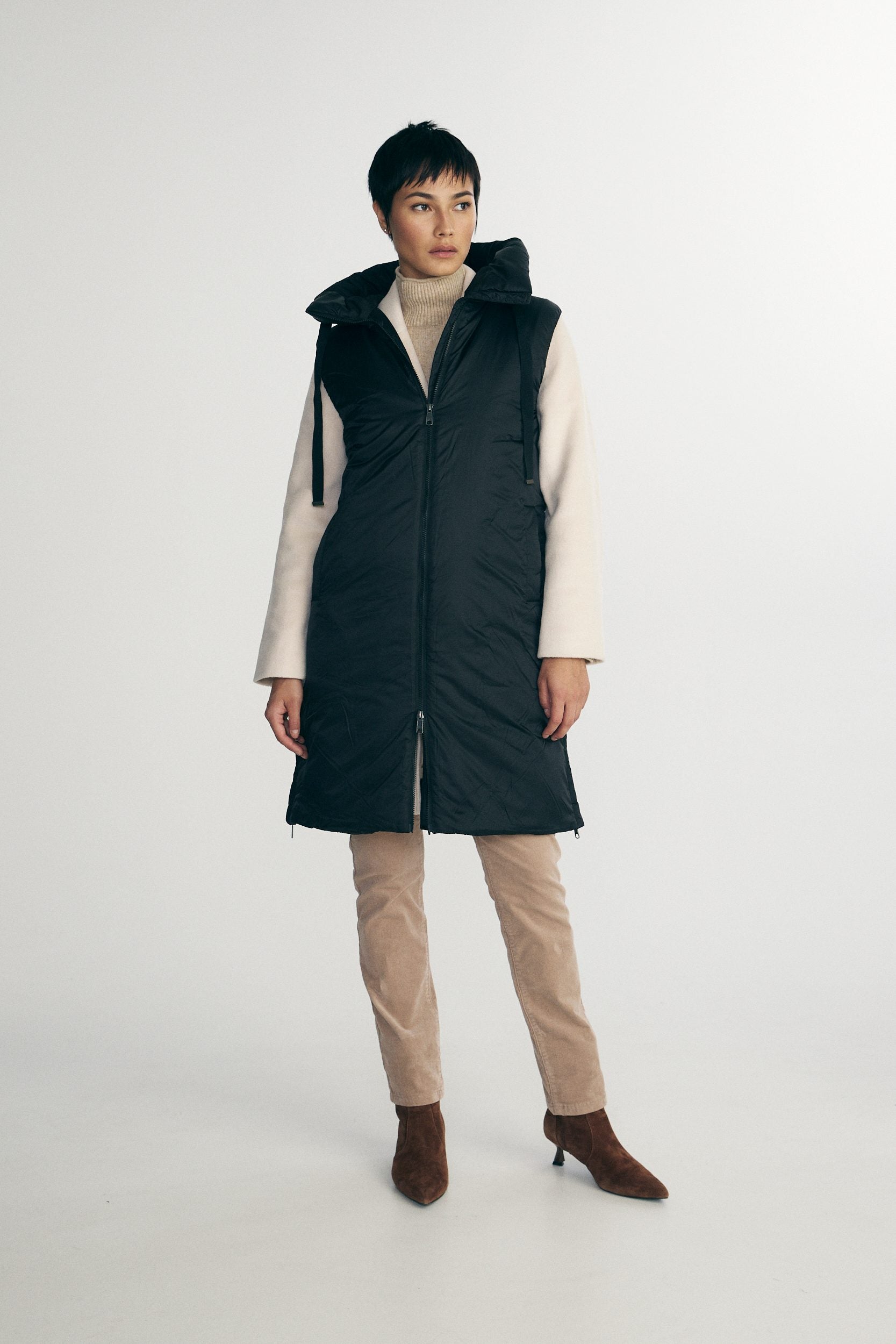 Manteau matelassé sans manche à capuche