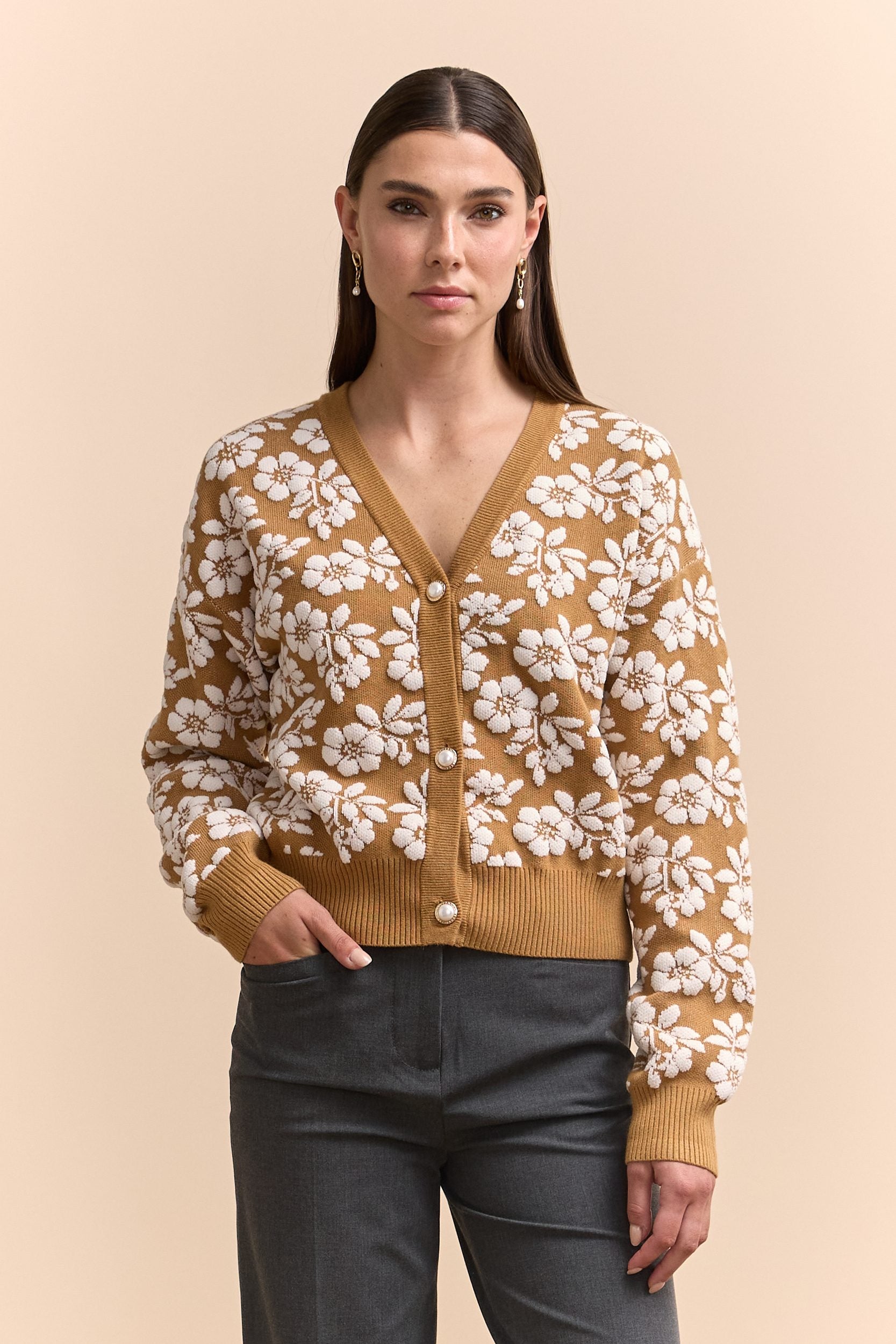 Cardigan à motif de fleurs