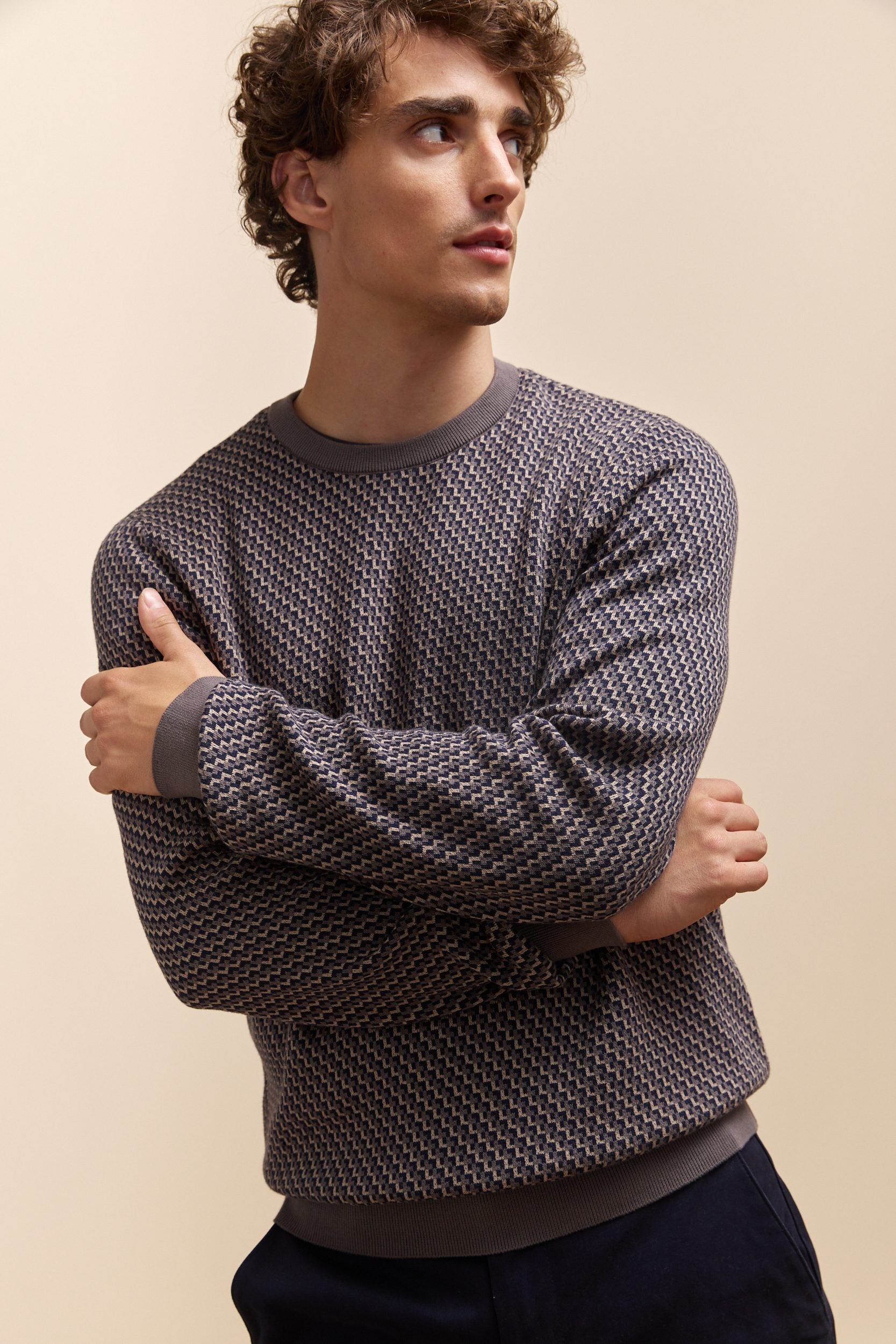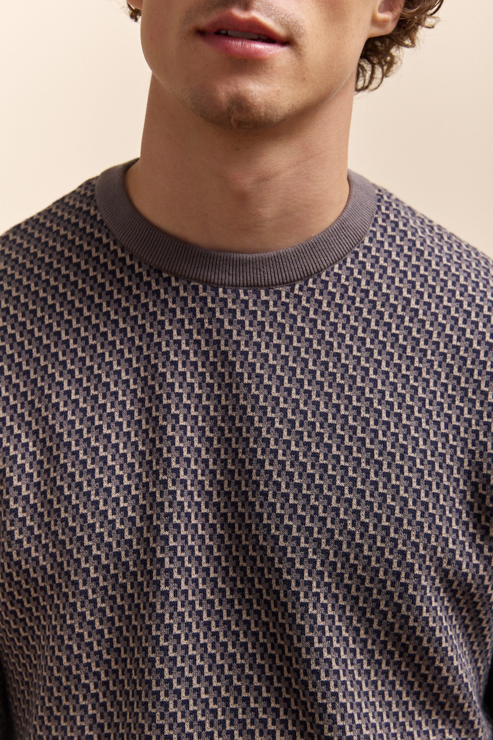 Pull jacquard col rond
