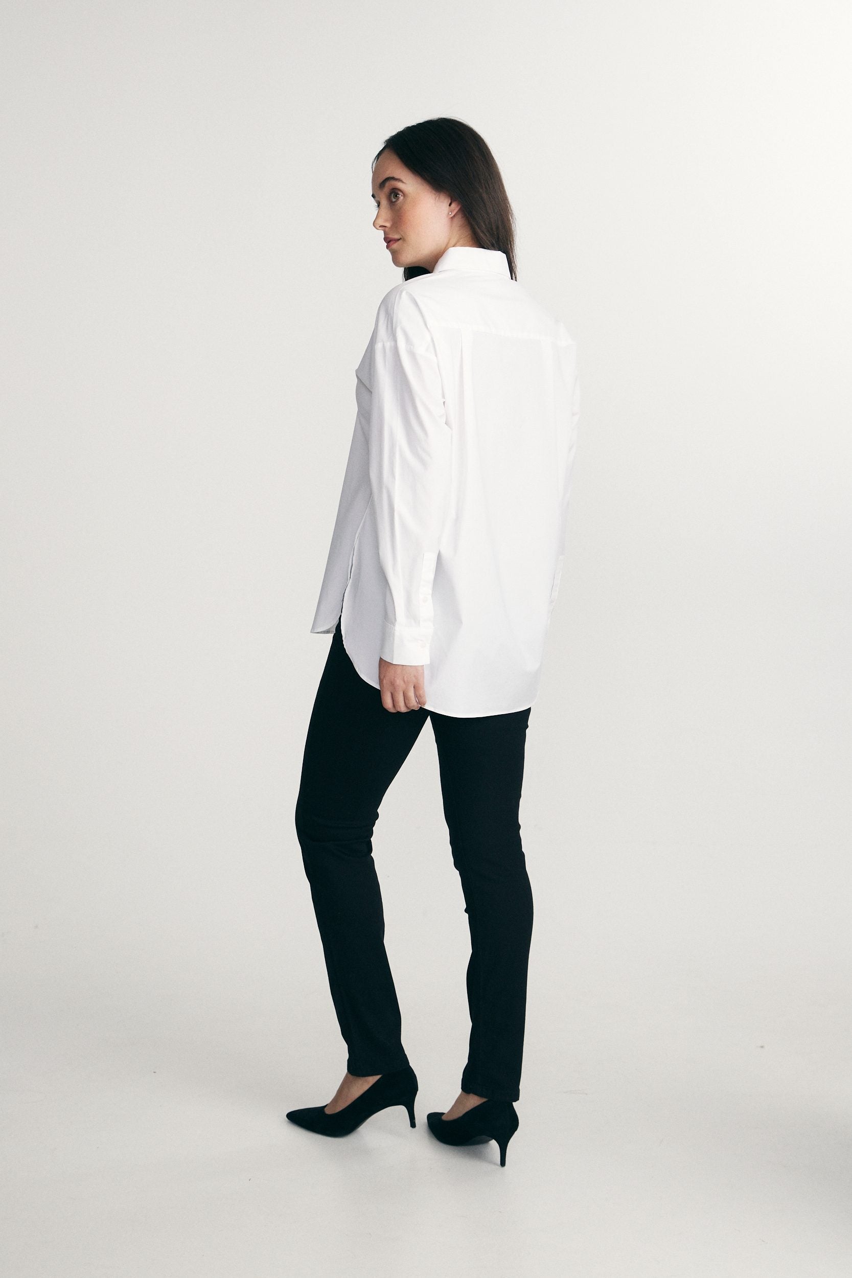 Découvrez la nouvelle star de votre garde-robe. La chemise oversized en popeline allie parfaitement une élégance structurée à une allure décontractée. Confectionnée en popeline de première qualité, elle garantit une apparence nette et impeccable tout au long de la journée. Polyvalente, elle se prête aussi bien à des tenues de bureau qu'à des moments de détente. Son ampleur généreuse assure un confort optimal et une touche de raffinement sans effort. Associez-la à votre jupe crayon préférée ou à un jean pour une allure chic et intemporelle. *