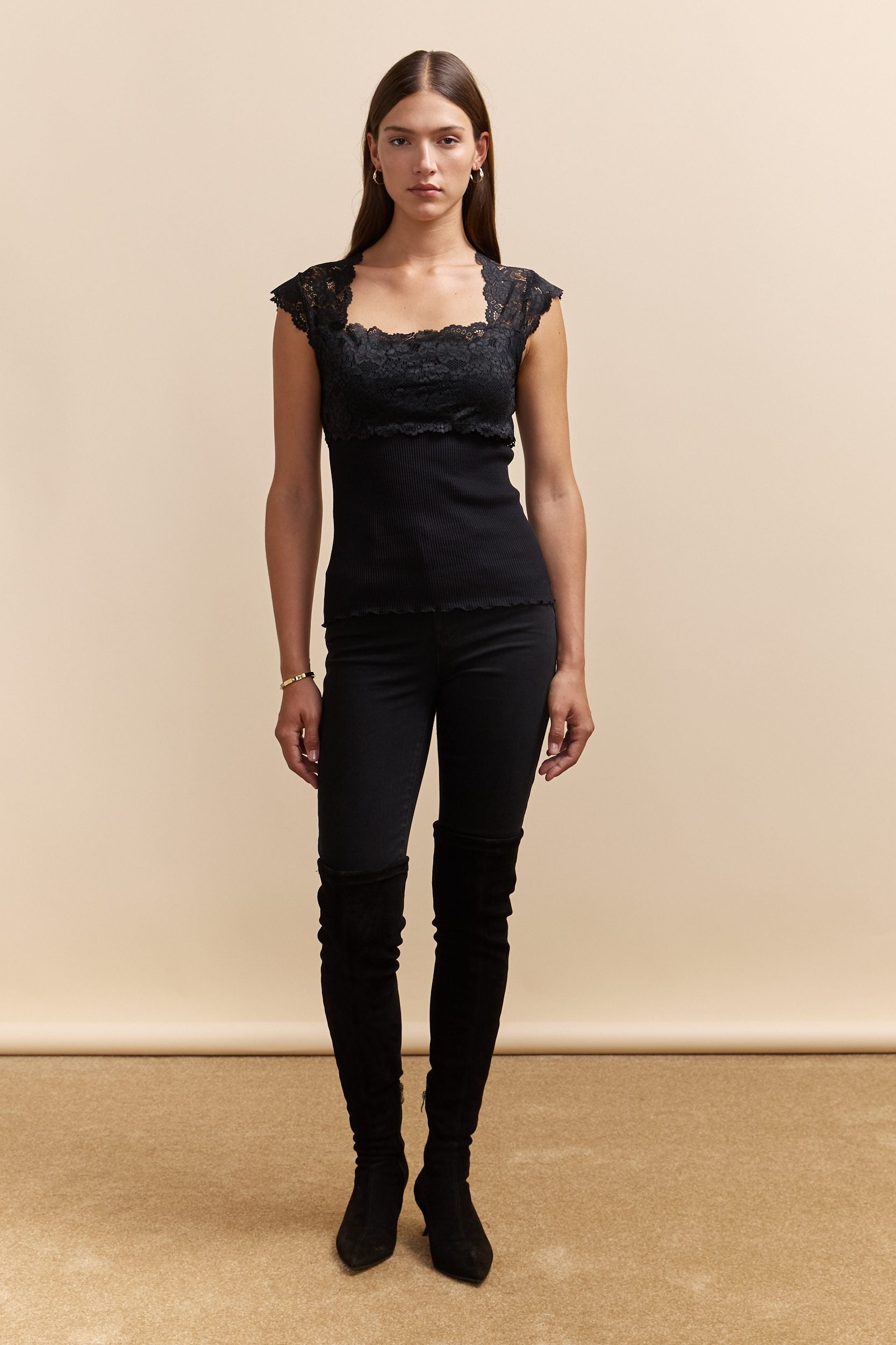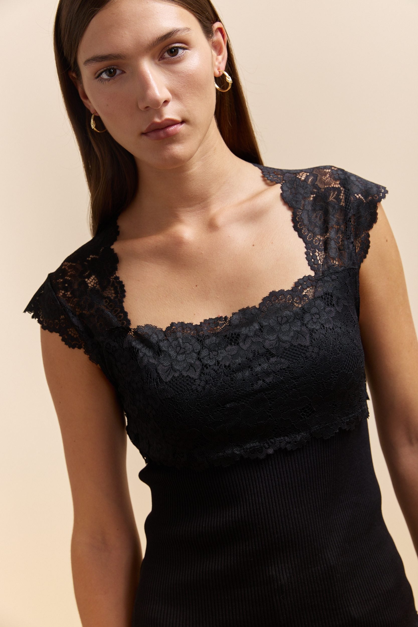 Haut côtelé avec détail en dentelle