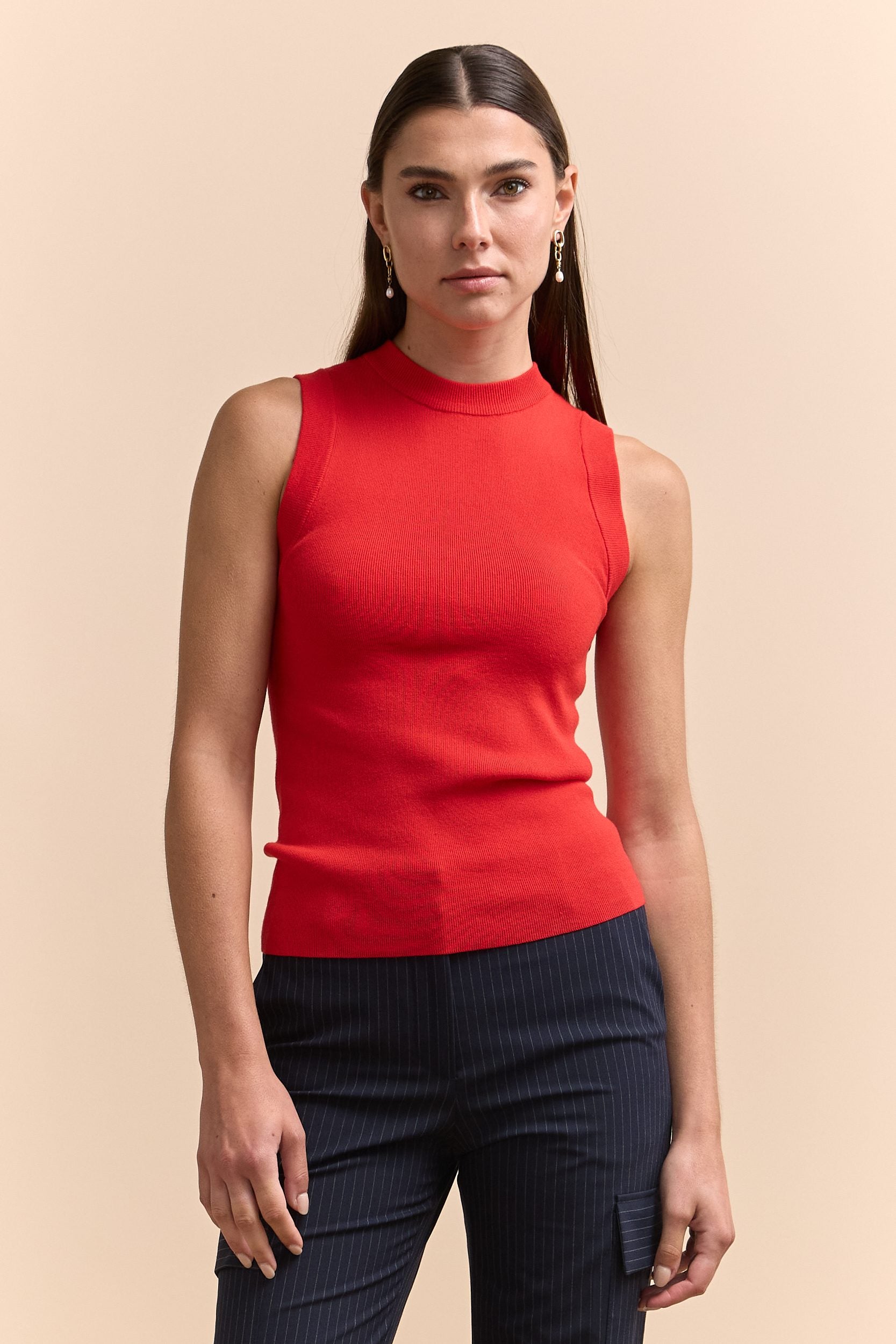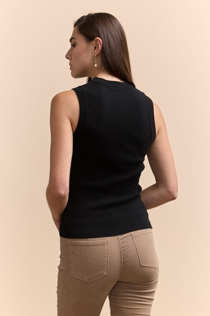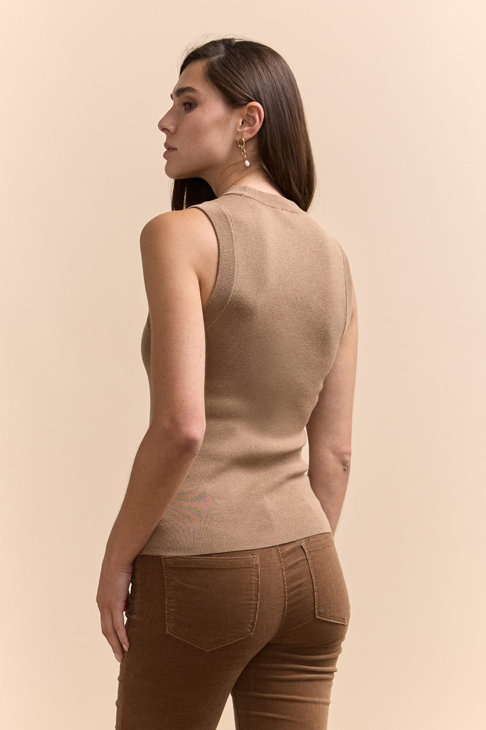 Pull sans manche en maille côtelé