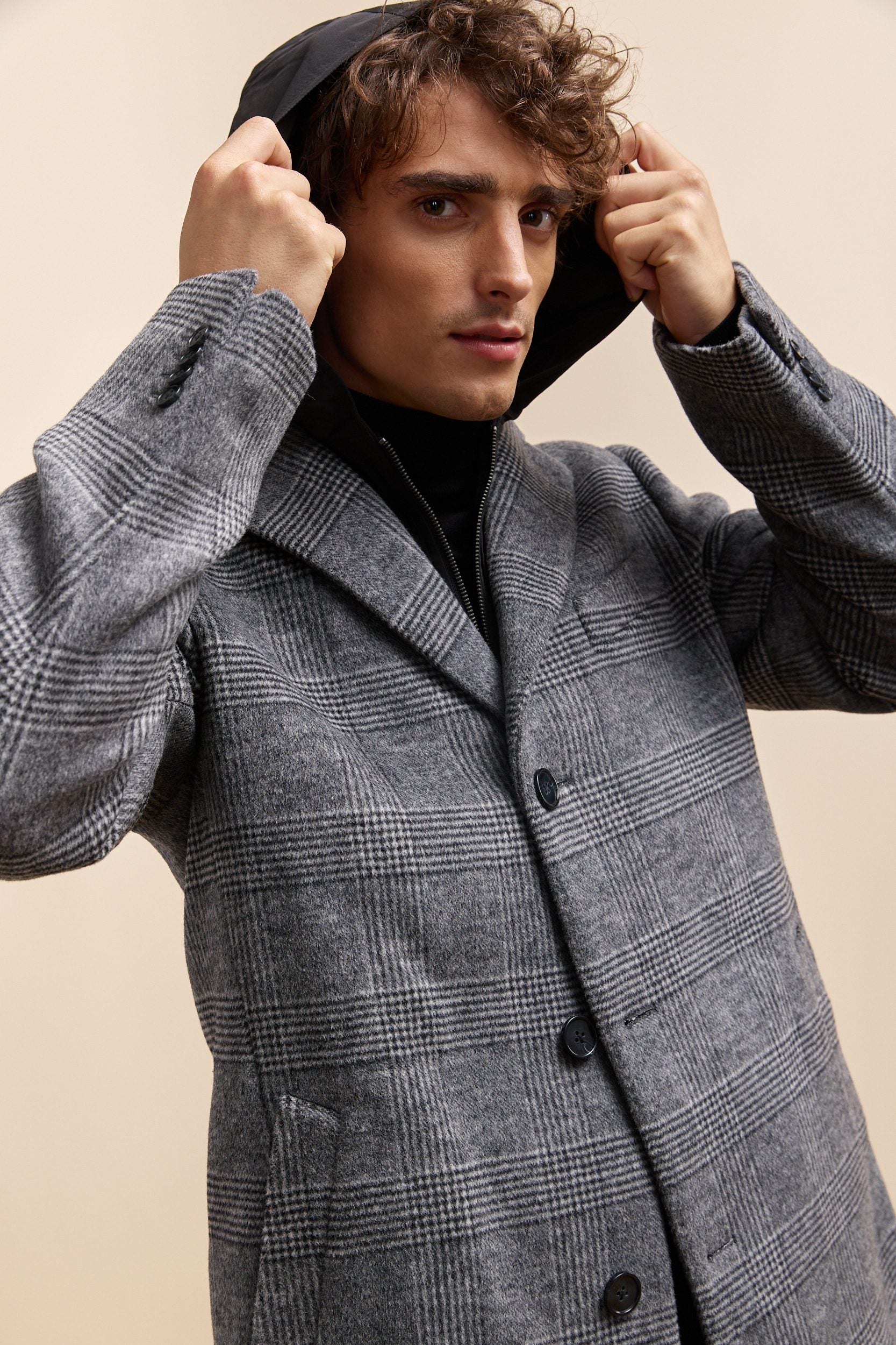 Stay stylish and comfortable with this chic check coat featuring a removable hood. Crafted from premium materials, it blends warmth and sophistication seamlessly, perfect for those cooler days. Dress it up or down; this versatile coat is a wardrobe essential for modern elegance.