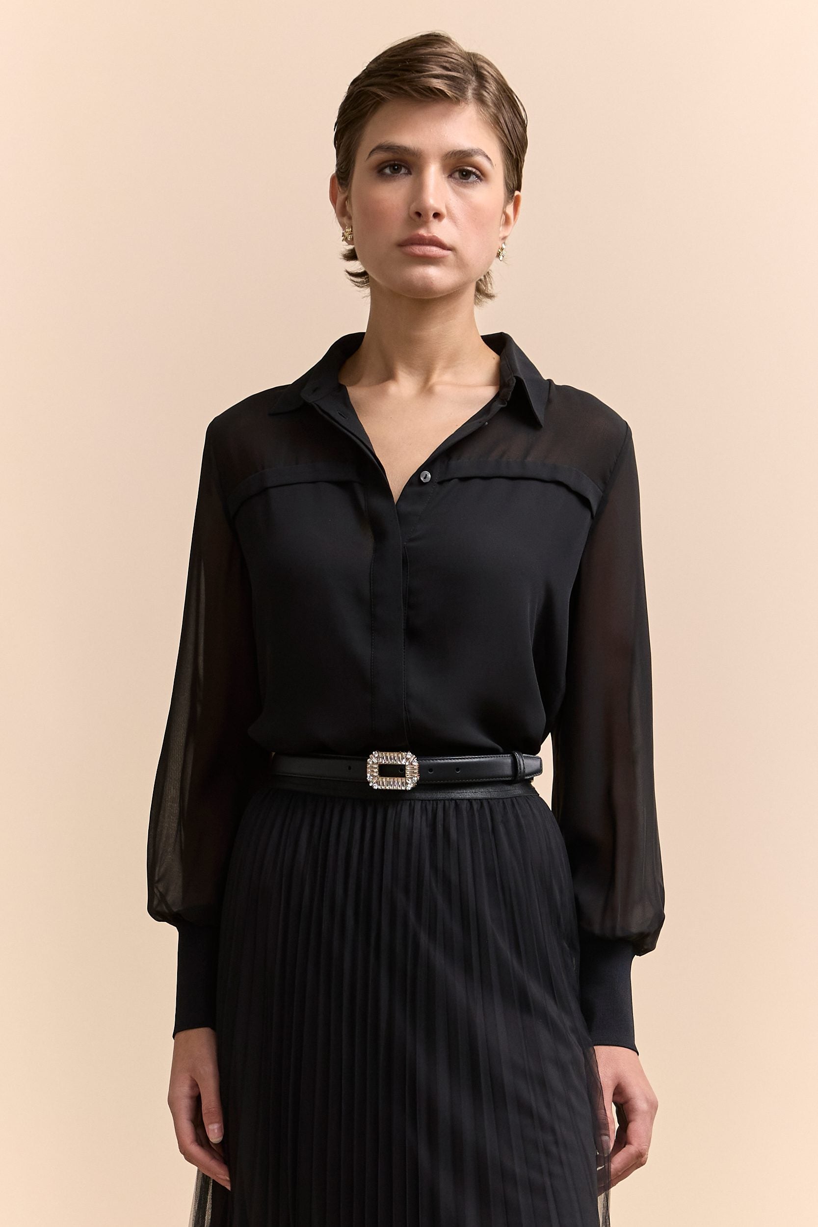 Crepe & chiffon blouse with puffy sleeves