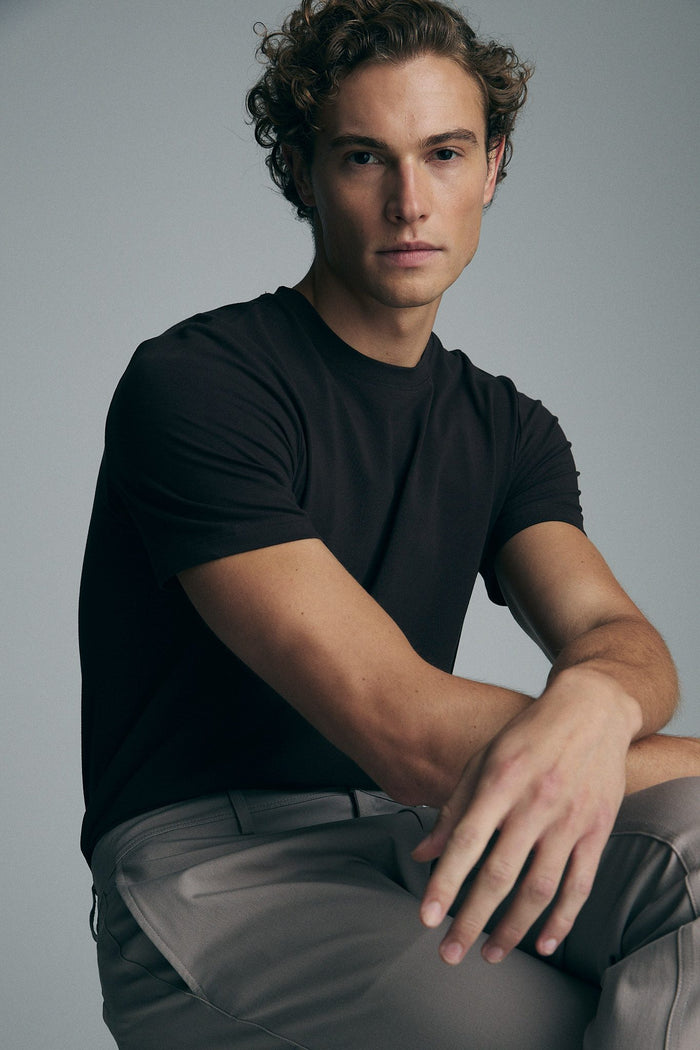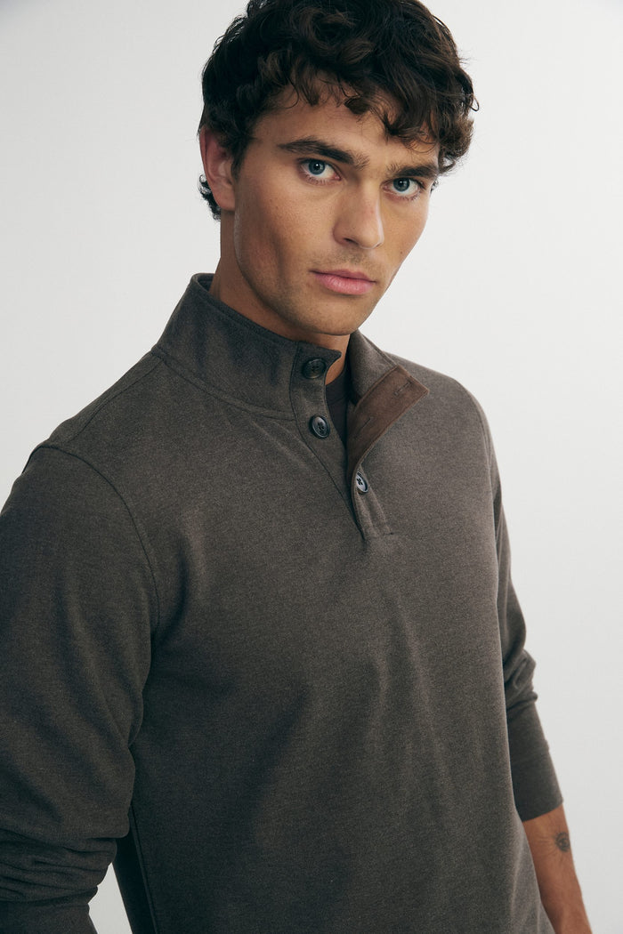 This buttoned mock-neck T-shirt, enhanced with a subtle herringbone pattern, combines modern style with everyday comfort. Crafted from a soft, carefully selected fabric, it offers a pleasant feel and adapts effortlessly to various looks. Easy to care for and versatile, it’s perfect for both relaxed moments and more refined outfits.