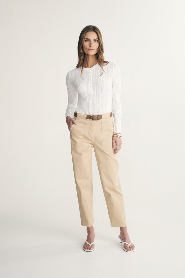 Lace neck rib sweater