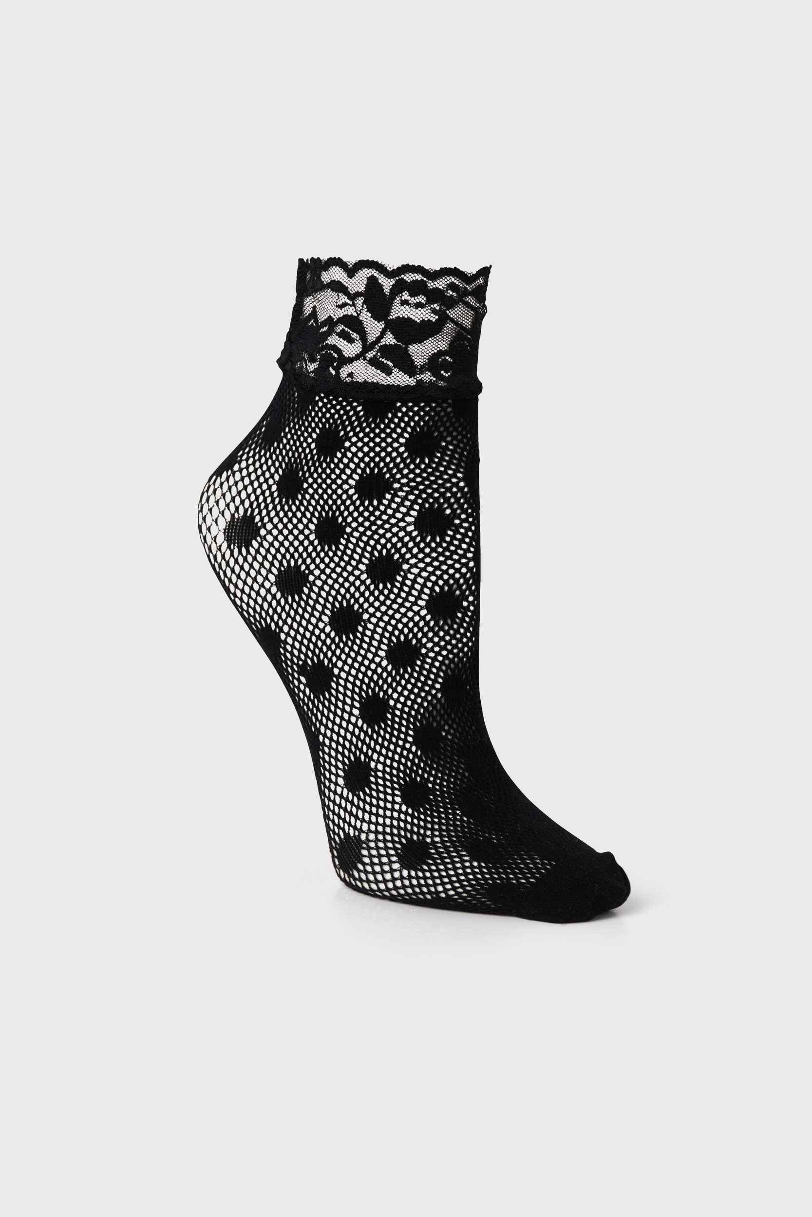 Polka dot fishnet socks with lace